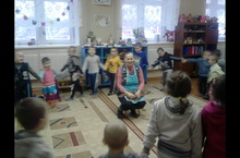 После Новогодних каникул в детский сад прискакал Зайчик. Он расспросил у ребят, как они провели праздничные дни. Затем поиграл с ними, послушал стихи и песни. В конце дети получили мелки для рисования.