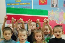 Сначала дошкольники посмотрели видео о нашей Республике и познакомились с её символами — гербом и флагом. Затем они решили сделать флаг Татарстана из конструктора ЛЕГО. Получился большой, красивый и яркий флаг.