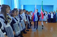 Сегодняшний День знаний в МБОУ «Большеаксинская СОШ» начался с церемонии поднятия государственного флага Российской Федерации и Республики Татарстан и исполнения гимнов.