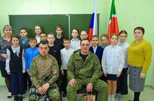 На урок были приглашены глава Большеаксинского сельского поселения Унисков С.П., участники специальной военной операции.
