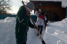 В рамках Года семьи юнармейцы оказали посильную помощь матери участника СВО по очистке придворовой территории от снега.