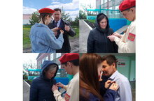 В МБОУ «Большеаксинская СОШ» накануне Дня Победы проходит ежегодная патриотическая акция «Георгиевская ленточка». Юнармейцы и Волонтеры Победы школы раздали и прикрепили Георгиевские ленточки участникам митинга.