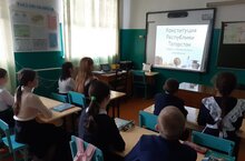 В честь этого праздника 8-9 ноября в школе прошли открытые уроки и классные часы, посвященные государственной символике, истории возникновения и принятия Конституции РТ, содержанию основного закона Татарстана.