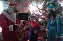 В рамках акции "Ёлка желаний" Дед мороз и Снегурочка посетили обучающегося на дому. Вручили сладкий подарок и поздравили С Новым годом.