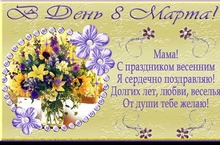 Уважаемые наши мамы! Поздравляем Вас с праздником 8 марта! Желаем счастья, здоровья, удачи. Мы любим Вас !!!