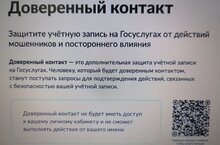 Сервис «Доверенный контакт», направлен на повышение уровня цифровой безопасности граждан и защиту их персональных данных при использовании Единого портала государственных и муниципальных услуг (функций) и других информационных систем, поддерживающих идентификацию, аутентификацию и авторизацию через Единую систему идентификации и аутентификации.