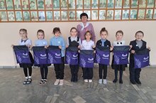 Ребята начальных классов получили настольную игру, значки и сумки для сменной обуви, а классные руководители - шейные платки с символикой "Орлята России".