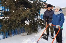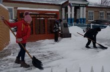 В рамках трудового воспитания, учащиеся нашей школы помогают ветеранам тыла, своим бабушкам и дедушкам в уборке дворов от снега.