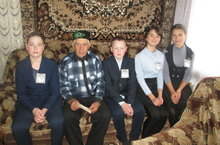 Учащиеся нашей школы патриотического добровольческого отряда "Волонтеры Победы" поздравили с 85 - летием юбиляра, труженика тыла Хисамутдинова Магъсума Арифулловича.