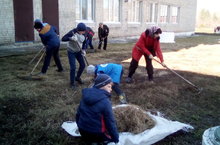 Обучающиеся и сотрудники нашей школы сегодня активно занимались уборкой территории .