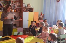 Библиотекарь Марина Николаевна с детьми провела беседу о наших пернатых соседях. Какие же птицы у нас зимуют, как надо ухаживать за ними.