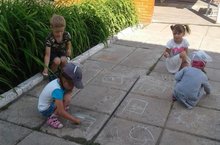 На асфальт идем с мелками!