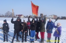 22 февраля 2013 года проводился «Снежный десант».Школа №1 приехала к нам в школу ,мы встретили их с уважением и с улыбкой на лице. Обменялись с друг другом подарками ,и по обычаю нашей школы ,пили чай с блинами .После того мы пошли все вместе к монументу и поставили венок ,все вместе сфотографировались на память.