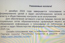 7 декабря 2024 года завершается голосование по публичному формированию целей и задач республиканских органов исполнительной власти и общественному контролю за их исполнением. Онлайн-голосование идет в мобильном приложении "Услуги РТ" и на Портале госуслуг Республики Татарстан в разделе "Опросы жителей" https://open.tatarstan.ru/polls