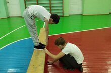 -"Поднимание туловища из положения лежа на спине". Учащиеся успешно справились с испытаниями. Молодцы!