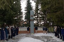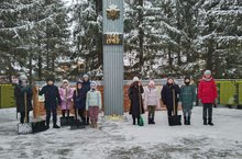 В рамках военно-патриотического месячника учащиеся школы очистили территорию монумента.