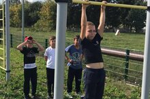 Чтобы проверить свои физические возможности на спортивной площадке школы сегодня собрались ребята среднего и старшего звена. Школьники опробовали свои силы в следующих испытаниях: челночный бег, сгибание и разгибание рук в упоре лежа на полу, наклон вперёд из положения стоя с прямыми ногами на гимнастической скамье, подтягивание из виса на низкой и высокой перекладине, поднимание туловища из положения лёжа на спине, прыжок в длину с места.