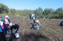 Осень — время сбора урожая. Сельскохозяйственная продукция, выращенная нашкольном приусадебном участке используется для организации питания учащихся вшкольной столовой, что гарантирует — без обедов ребята не останутся.Сентябрьская погода порадовала нас тёплым солнечным деньком и мы, вооружившисьперчатками, вёдрами, отправились на пришкольные участки, собирать урожай.По традиции младшие школьники убирали урожай морковки и свёклы, астаршеклассники — оккупировали картофельное поле. -