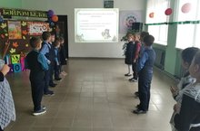 В этот день ученики 1- 4 классов участвовали в игре КВН "Ты наш друг, родной язык!". В упорной борьбе победила команда 4 класса . И только на 2 балла отстала от них команда 3 класса .