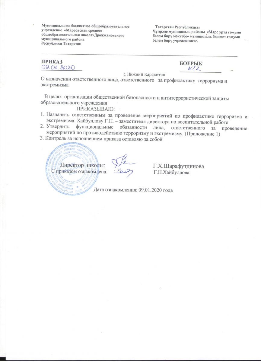приказ о назначении лица, ответственного за антитеррористическую безопасность
