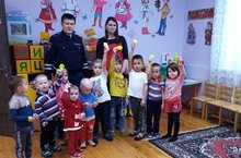 В целях предупреждения детского дорожно-транспортного травматизма,сотрудники ГИБДД научили детей применять свои знания в области дорожного движения в повседневной жизни в различных ситуациях. Напомнили ребятам, в каком месте необходимо переходить дорогу, где это делать безопаснее всего, рассказали про дорожные знаки и светофоры.