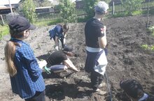 Воспитанники лагеря и труда "КРУТО" активно работают на пришкольном участке.