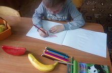 Сегодня проходили тему натюрморт.И решили рисовать дары осени;фрукты и овощи.Использовали разные цвета.