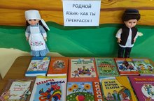 Книжно иллюстративная выставка на тему "Родной язык-как ты прекрасен!" Использовали разных книг наших татарских писателей,учебно-методические пособия по родному языку,книги татаских песен и стихов.