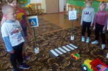 Сегодня мы повторили дорожные знаки.Играли сюжетно-ролевые игры" Моё поведение на большой дороге".Дети остались довольными.