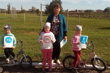 Сегодня мы с детьми покатались на велосипеде,"Конец велосипедной дорожки", "Движение на велосипедах запрещено".идах.Вместе с этим мы познакомились со знакками "Полоса для велосипедистов"