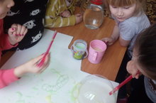 Мы любим эксперементировать.Сегодня взяли воду,средство для мытья посуды,палочки для сока 3 три штуки.Воду сделоем разноцветной, палочек всех вместе укрепляем резиночкой.Делаем мыльные пузыри прямо на большой ватман,появляется рисунок.Детям было очень интнресно.