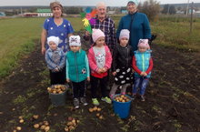 Балалар белән алдынгы эш ветераны Гафаров Рафик бабайга бәрәнге чүпләшергә, булышырга бардык.Олы кешенең шатлыгы эченә сыймады инде,бик зур рәхмәтләр эйтте.Балалар да бик рәхәтләнеп,узышып-узышып чиләккә бәрәнгене салдылар.Кемнең чиләге тизрәк тула дип кайгырыштылар.Аларга олы кешегә файда китерү бик ошады.