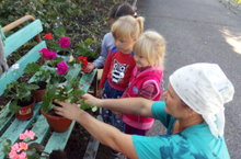 \ Посадили многоцветных гераний.Нам нравиться ухаживать за домашними цветами.Каждое утро поливаем.Наблюдаем за их ростом.