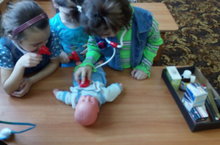 В детском саду мы любим играть в сюжетно-ролевые игры.Детям очень нравиться играть ,но в врача любят побольше.Например Мадина и Алия хотят стать врачом,когда вырыстут.Практическое применение сюжетно-ролевых игр в эксперименте способствовало увеличению объема словаря, навыков словоизменения и словообразования у детей. -
