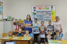 В завершение занятия Вахитова Л. И. подарила детям дошкольного возраста раскраски, а учащимся начальных классов памятки и световозвращающие брелки. Учащиеся и педагоги поблагодарили за подарки, пообещали быть внимательными на дороге и всегда соблюдать Правила дорожного движения. -