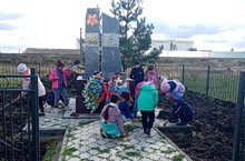 В рамках добровольческой акции "Осенняя неделя добра-эстафета добрых дел" учителя совместно с учащимися благоустроли территорию обелиска. Подобные традиционные мероприятия на территории родного посёлка сплачивают детей, способствуют трудовому и патриотическому воспитанию подрастающего поколения