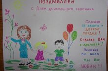 Дорогие наши воспитатели! Поздравляем вас с Днём воспитателя и всех дошкольных работников! Мы хотим сказать вам спасибо за увлекательную и интересную жизнь в детском саду. За весёлые праздники, за развлекательные программы, за поучительные мероприятия. Желаем вам, чтобы ваше время на работе также проходило хорошо, как и у нас. Не болейте, не уставайте. Будьте всегда весёлыми и активными, задорными и позитивными. А мы попросим деда Мороза на Новый год, чтобы он исполнил все ваши желания. Пусть в вашей жизни всё будет замечательно.