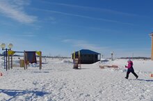 Воспитатель детского сада помогала юным лыжникам освоить азы лыжного спорта.