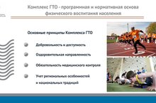 Зачем нужен комплекс ГТО? Целями ВФСК ГТО являются укрепление здоровья, гармоничное и всестороннее развитие личности, воспитание патриотизма. Задачами Всероссийского физкультурно-спортивного комплекса являются: а) увеличение числа граждан, систематически занимающихся физической культурой и спортом в Российской Федерации; б) повышение уровня физической подготовленности и продолжительности жизни граждан Российской Федерации; в) формирование у населения осознанных потребностей в систематических занятиях физической культурой и спортом, физическое самосовершенствование и ведение здорового образа жизни; г) повышение общего уровня знаний населения о средствах, методах и формах организации самостоятельных занятий, в том числе с использованием современных информационных технологий; д) модернизация системы физического воспитания и системы развития массового, детско-юношеского, школьного и студенческого спорта в образовательных организациях, в том числе путем увеличения количества спортивных клубов. ПРИНЦИПЫ ВНЕДРЕНИЯ ВФСК ГТО Всероссийский физкультурно-спортивный комплекс основывается на следующих принципах: а) добровольность и доступность; б) оздоровительная и личностно ориентированная направленность; в) обязательность медицинского контроля; г) учет региональных особенностей и национальных традиций.