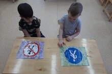 Цели: Закрепить и систематизировать представления детей о знаках дорожного движения, их назначении, тренировать в подборе подходящих по форме и цвету фрагментов рисунка дорожного знака и складывании их в целое изображение, развивать память, связную речь, логическое мышление, пространственную ориентировку, внимание, мелкую моторику рук.