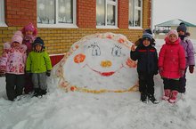Зимой у детей меньше возможностей поиграть на воздухе, но зато есть снег, которому дети всегда рады. Играть в снежки , лепить снежную бабу, делать скульптуры из снега -это весело.Нынешняя зима щедро одарила землю предновогодним снегом. И взрослые и дети стали мастерить снежные фигуры.Такой замечательный Колобок получился и у нас в детском саду. Каждый день встречает и провожает он детей с улыбкой.