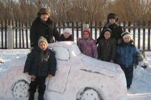 В нашем детском саду был проведен конкурс "Снежных фигур". Победила команда "Автолюбители".