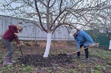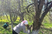 Сегодня сотрудники школы выполнили побелку плодовых деревьев на закреплённом участке. -