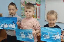 Нетрадиционная техника рисования ладошками по теме: «Лебедь».