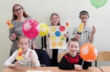 Участники кружка «Я могу» вспомнили как различаются смайлики в тексте и что обозначают, изготовили веселую открытку с изображением улыбки и сердца, надули яркие воздушные шары. -