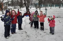 Прогулки на свежем воздухе - прекрасное время для развлечений, особенно, когда выпадает снег. Он радует глаз и поднимает настроение всем детям. Вот и сегодня долгожданный выпавший снег стал радостным сюрпризом для детей. Ребята оделись потеплее, не забыв и про варежки, и поспешили на улицу, чтобы поиграть со снегом и покидать снежки. Играя на своем участке, ребята решили слепить и Снеговика. Стараясь, с удовольствием катали небольшие снежные комы.