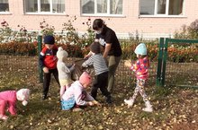 Дети с воодушевлением и энтузиазмом помогали взрослым наводить порядок на участке для прогулок. С большим удовольствием ребята убирали облетевшую листву, сгребали в кучи и складывали в мешки.Табигатьтә хезмәт еш кулланыла, чөнки мәктәпкәчә яшьтәге балаларны табигать белән таныштыруның практик алымы буларак кулланыла. Бик күп коелган яфракларны тәрбияче һәм тәрбияләнүчеләр җыештырдылар .