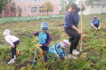 Огород в нашем детском саду – дело любимое и полезное. Выращивая растения на грядках, воспитанники, летом наблюдают, какие из них растут быстрее, сравнивают форму и цвет листьев, цветков, а осенью и плодов. Сотрудники нашего детского сада и школы совместными усилиями произвели сбор картофеля, моркови и свеклы. Как чудесно в огороде