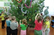 Скоро Новый год! Время украшать группу и ёлку. Ожидание праздника – всегда приятно: игрушки и фонарики на ней, все это приносит радость детям. Также дети испытывают особый восторг от новогодней елочки. Она выглядит необыкновенно празднично, а в новогоднем наряде – просто сказочно! Сколько удовольствия и радости принёс этот процесс детям, да и взрослым! С детьми украсили ёлочку и встали вокруг неё в хоровод!