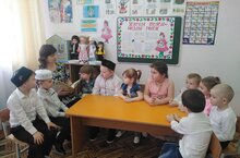 Фольклор - это устное народное творчество. Познакомила детей с татарским фольклором, дала представление о татарских народных песнях, плясках, хороводах, , запевках; познакомила детей с элементами народных обрядов и праздников. Нам хочется, чтобы дети узнали истоки отечественной культуры, обычаи татарского народа, которые возникли в далеком прошлом, ведь недаром говорят: «у народа, который не знает своего прошлого, не может быть будущего. Читала детям татарские сказки «Ике кыз», «Сертотмас үрдәк”, отгадывали загадки. -